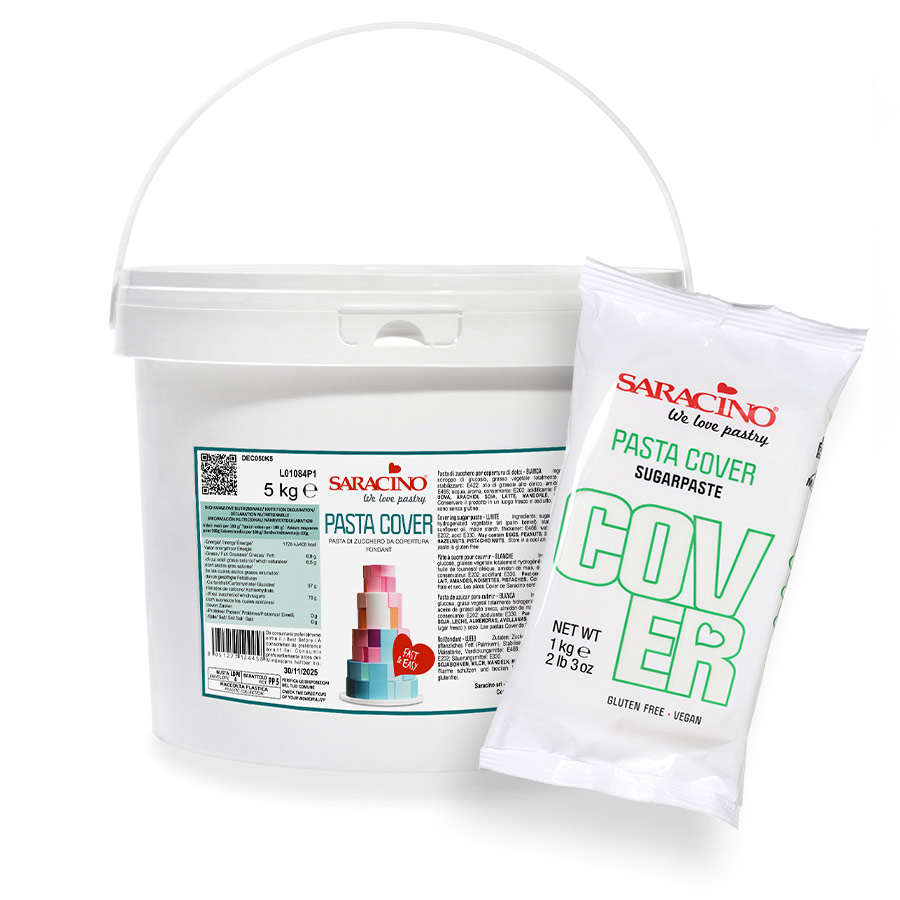 PASTA COVER von Saracino ist eine gebrauchsfertige Zuckermasse, ideal für das mühelose Überziehen von Torten – selbst in großem Format. Sie ist weich und sofort einsatzbereit, benötigt keine lange Bearbeitung und garantiert eine gleichmäßige Abdeckung ohne Risse oder Brüche. Ihre stabile Konsistenz sorgt dafür, dass sie bei Temperaturen zwischen 18 °C und 38 °C perfekt verarbeitet werden kann.