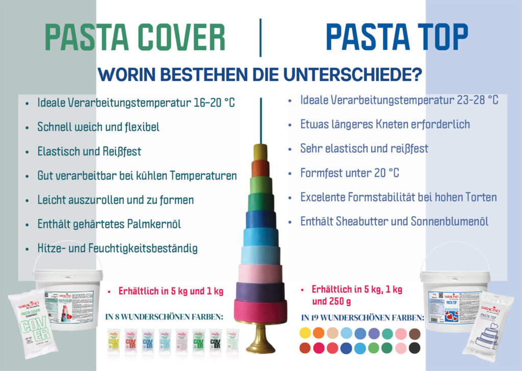 Besonders geeignet ist Pasta Top für Torten, die gekühlt gelagert werden müssen, da sie ihre Konsistenz und Form zuverlässig beibehält.